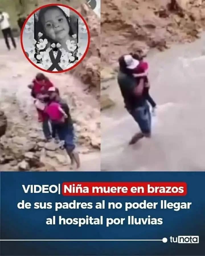Padres desesperados por salvar a su pequeña cruzan río bloqueado por lluvia