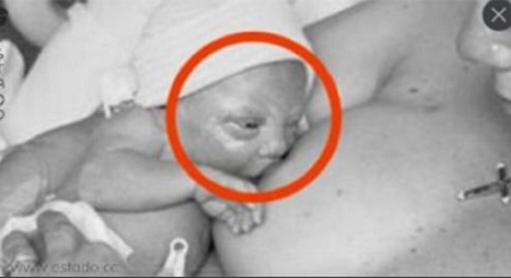 Madre da el pecho a su hijo. ¿Pero si la miras de cerca? ¡OH, DIOS MÍO!
